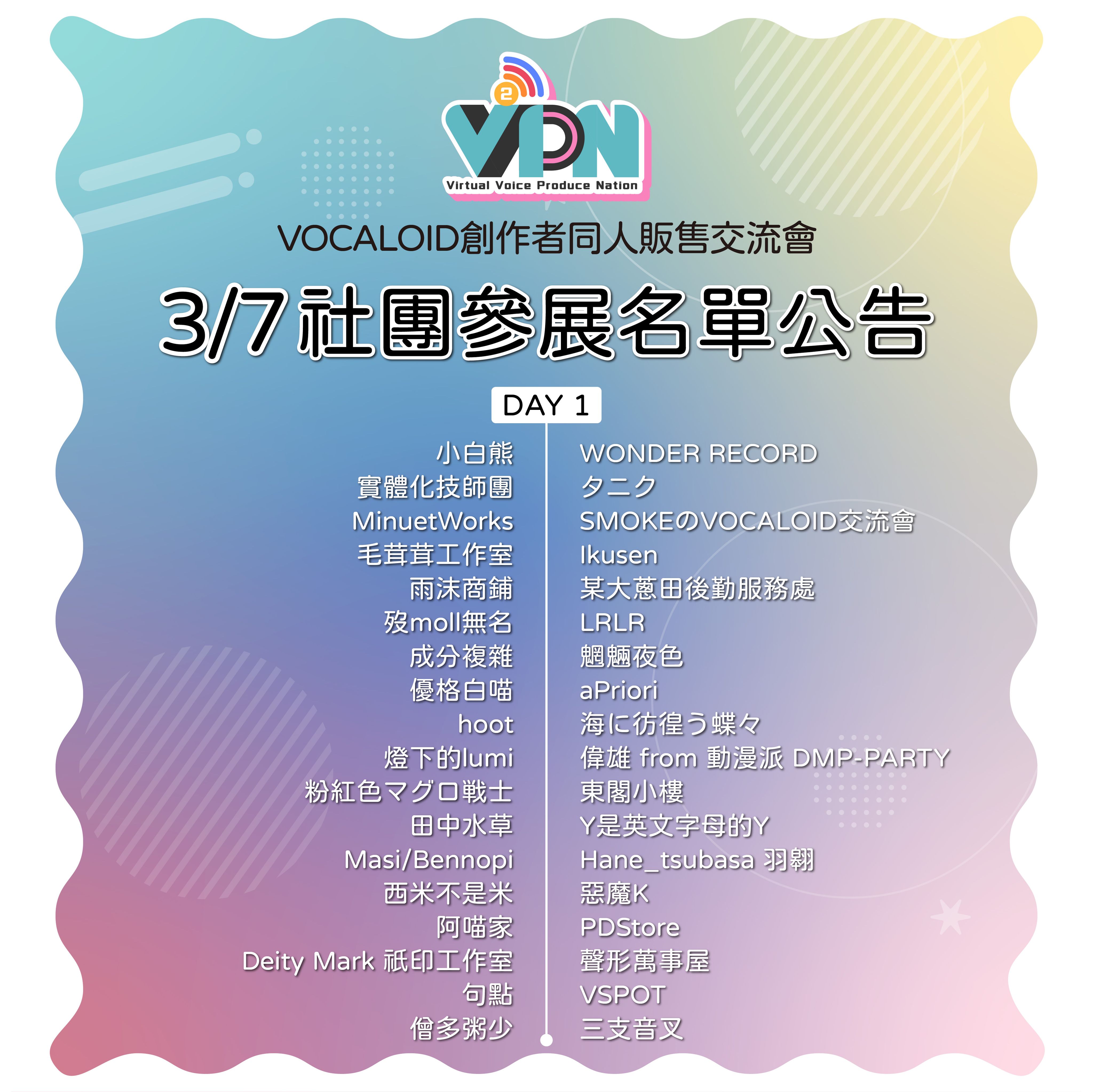 ※本名單僅以報名序位排列,非最終攤位順序。攤位順序將於日後公開。